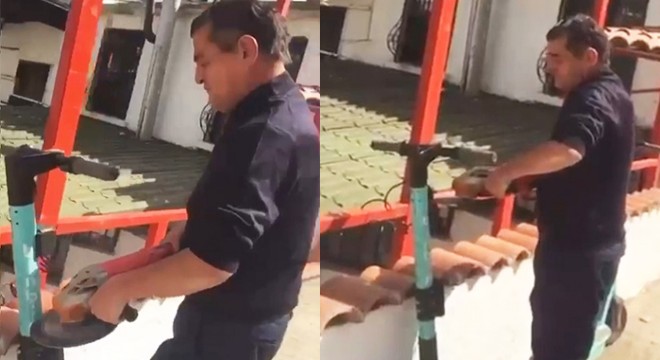 İş yerinin önüne bırakılan skuterleri spiralle kesti