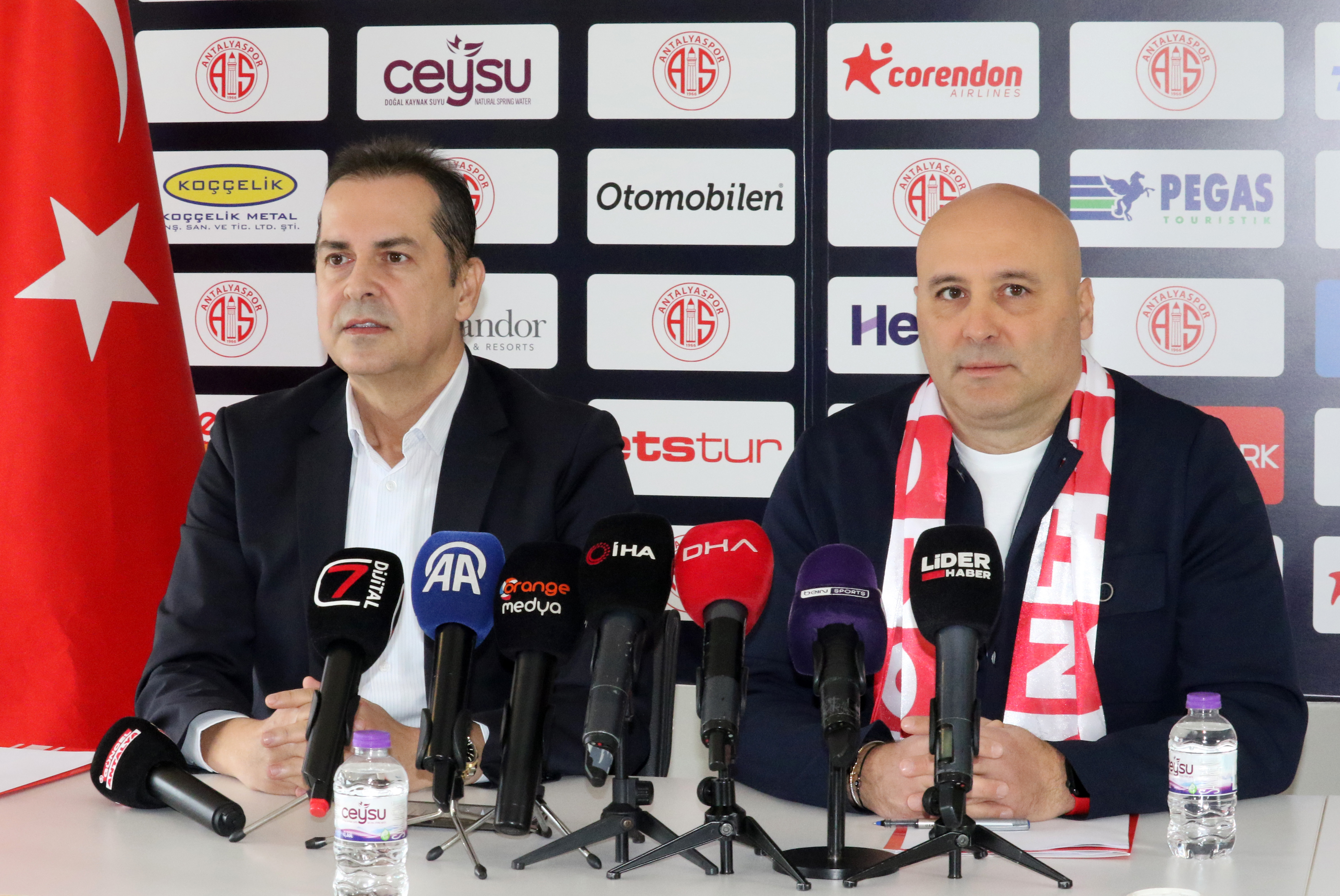 Konuşmaların ardından teknik direktör Sami Uğurlu ve Antalyaspor Başkanı Rıza Perçin, basın mensuplarına poz verdi.