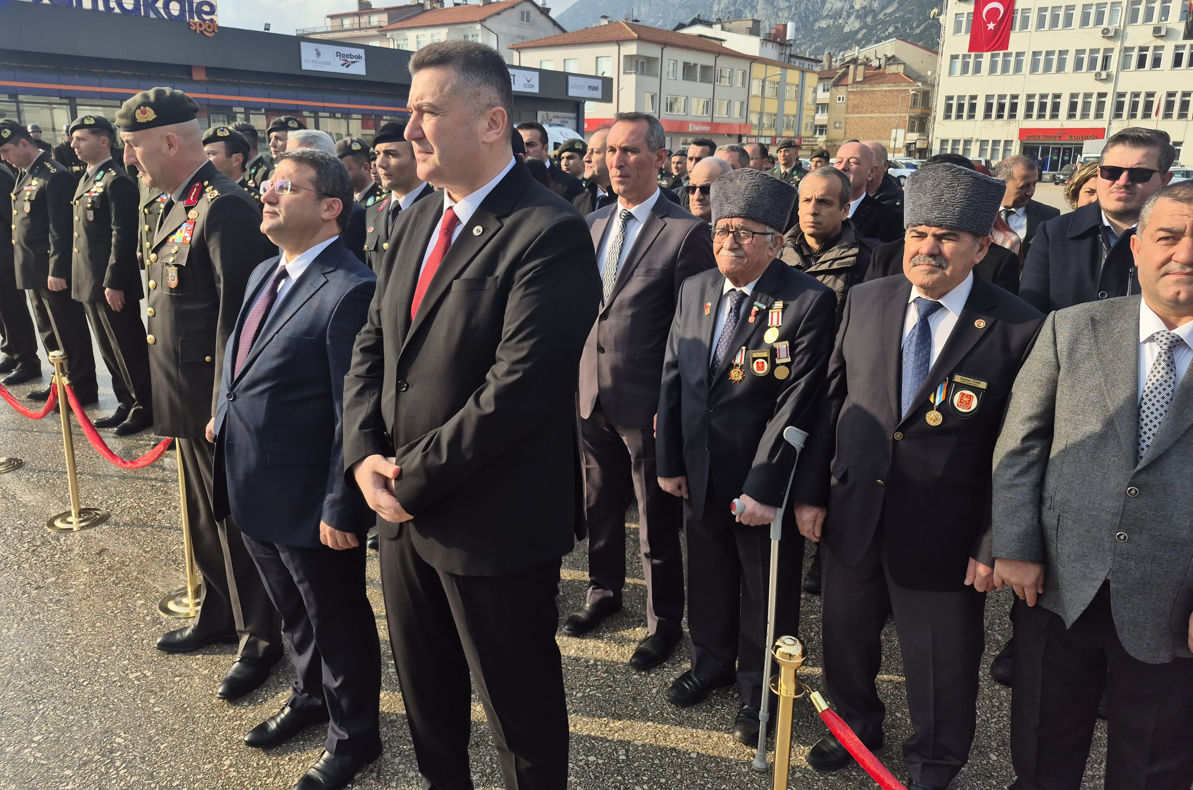 Eğirdir'de düzenlenen törene Kaymakam Ömer Çimşit, Eğirdir Dağ Komando Okulu ve Eğitim Merkezi Komutanı Tuğgeneral Ahmet Aşık, Belediye Başkanı Mustafa Özer, daire müdürleri, siyasi parti ilçe başkanları, sivil toplum kuruluşu temsilcileri, askeri erkan ve öğrenciler katıldı. Tören, Atatürk büstüne çelenklerin sunulmasıyla başladı. Ardından saygı duruşunda bulunulup, İstiklal Marşı okundu.