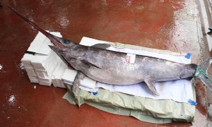 Denizli'de 2,5 metrelik kılıç balığı ilgi çekti