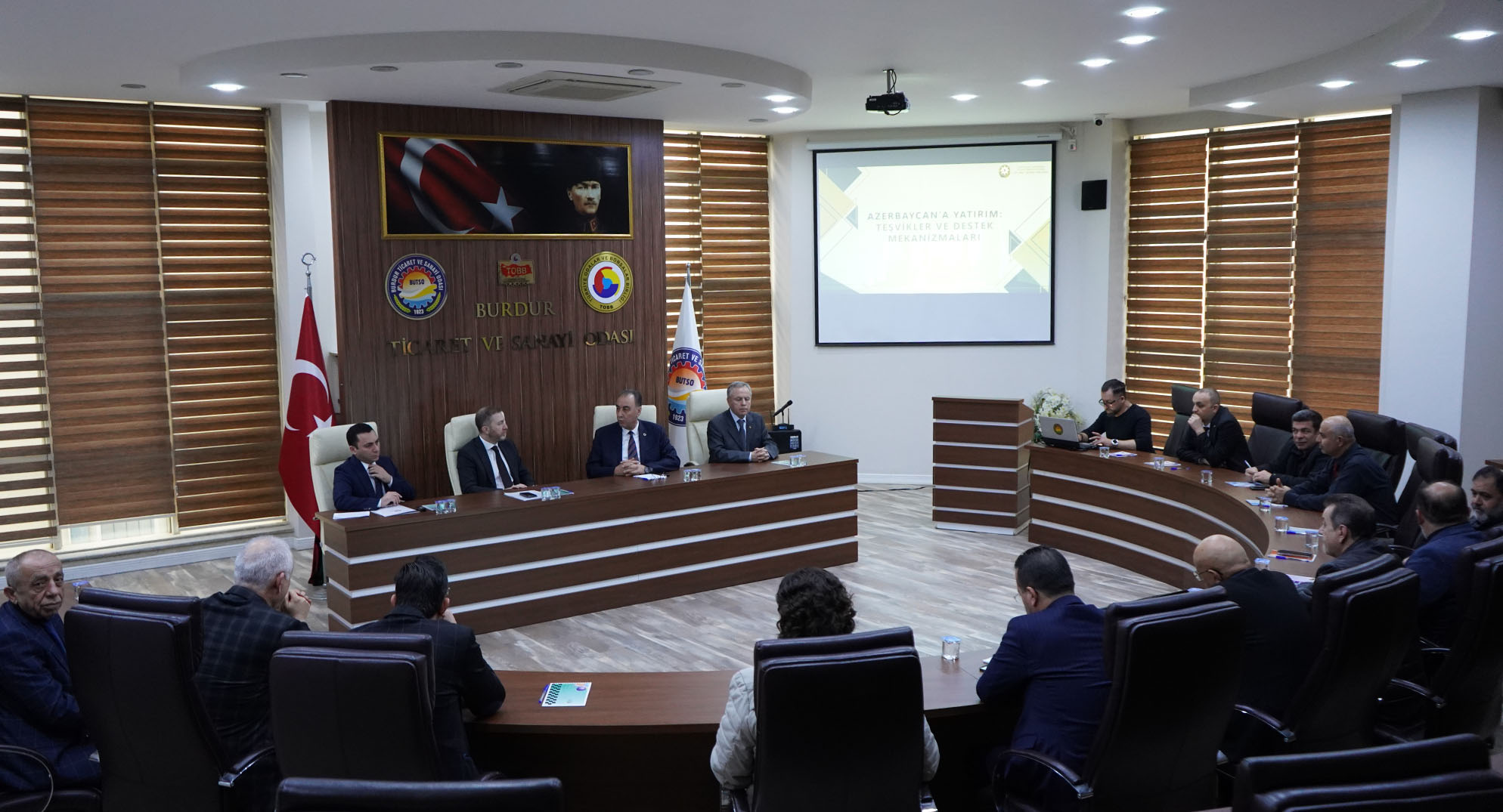 Tağıyev, Burdurlu iş insanlarına davette bulunarak, "!Burdurlu iş insanlarını ülkemizde yatırım yapmaya davet ediyoruz. İki ülke arasında kazan-kazan modelini geliştirmeliyiz. Ülkemizde yatırım yapmanız için cazip ve çeşitli muafiyetlerle destekler mevcut. Ülkemizden gümrüksüz ve vergisiz ihracat yapabilirsiniz. Azerbaycan'da üretip tüm dünyaya satabilirsiniz. Bu yıllarda Avrupa'yı bir araya getirecek yeni bir lojistik harita oluşacak" dedi.