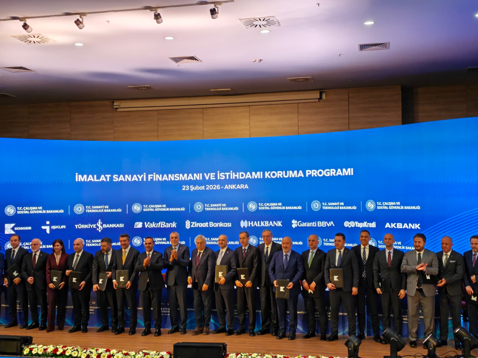 Ankara'da KOSGEB Genel Müdürlüğü'nde 'İmalat Sanayi Finansmanı ve İstihdamı Koruma Programı' düzenlendi. Programa; Çalışma ve Sosyal Güvenlik Bakanı Vedat Işıkhan ile Sanayi ve Teknoloji Bakanı Mehmet Fatih Kacır, KOSGEB Genel Müdürü Ahmet Serdar İbrahimcioğlu, Türkiye İş Kurumu (İŞKUR) Genel Müdürü Samet Güneş ile özel ve kamu bankalarının temsilcileri katıldı.