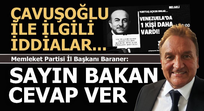 Baraner, “Dışişleri Bakanı Mevlut Çavuşoğlu ile ilgili bazı medya kuruluşlarında yapılan yayınlar ülkemiz ve toplumumuz için çok üzücü . Bakandan açıklama bekliyoruz” dedi.
