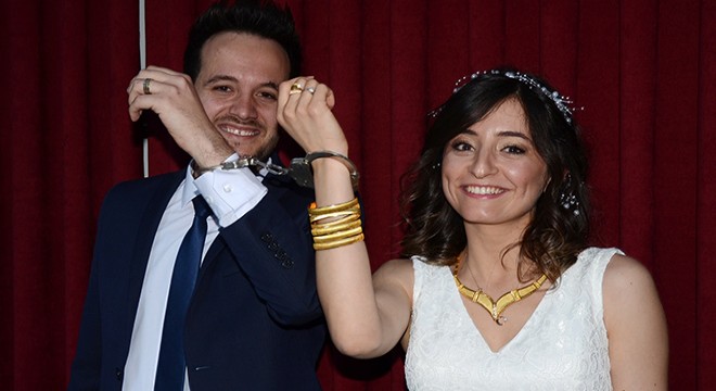 Sevgililer Günü'nde evlenen polis çifte meslektaşlarından kelepçe