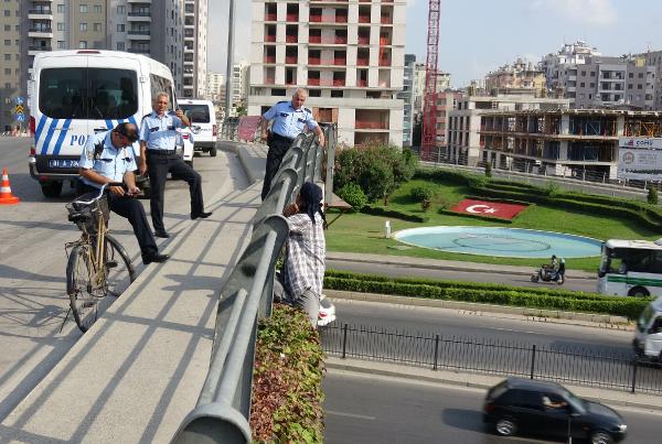 Olay, merkez Seyhan İlçesi'nde bulunan Celal Bayar Köprülü Kavşağı üzerinde meydana geldi. İddiaya göre evinden 1 ay uzaklaştırma cezası alan Hakan C., eline aldığı cam parçasını boğazına dayayarak köprünün demir korkuluklarına çıktı. Yoldan geçen vatandaşların şaşkın bakışları arasında, korkuluklardan sarkan Hakan C.'yi olay yerine gelen polis ekipler ikna etmeye çalıştı. Hakan C., eşinin gelmesini istedi. Olay yerine çağırılan itfaiye ekipleri de hava yastığı ile önlem aldı. Aldığı alkol ve sıcağın etkisiyle demirlere tutunmakta zorlanan Hakan C.'yi polisler kolundan yakalamaya çalıştı. Ancak kendini bırakan Hakan C. yola açılan hava yastığına düştü.