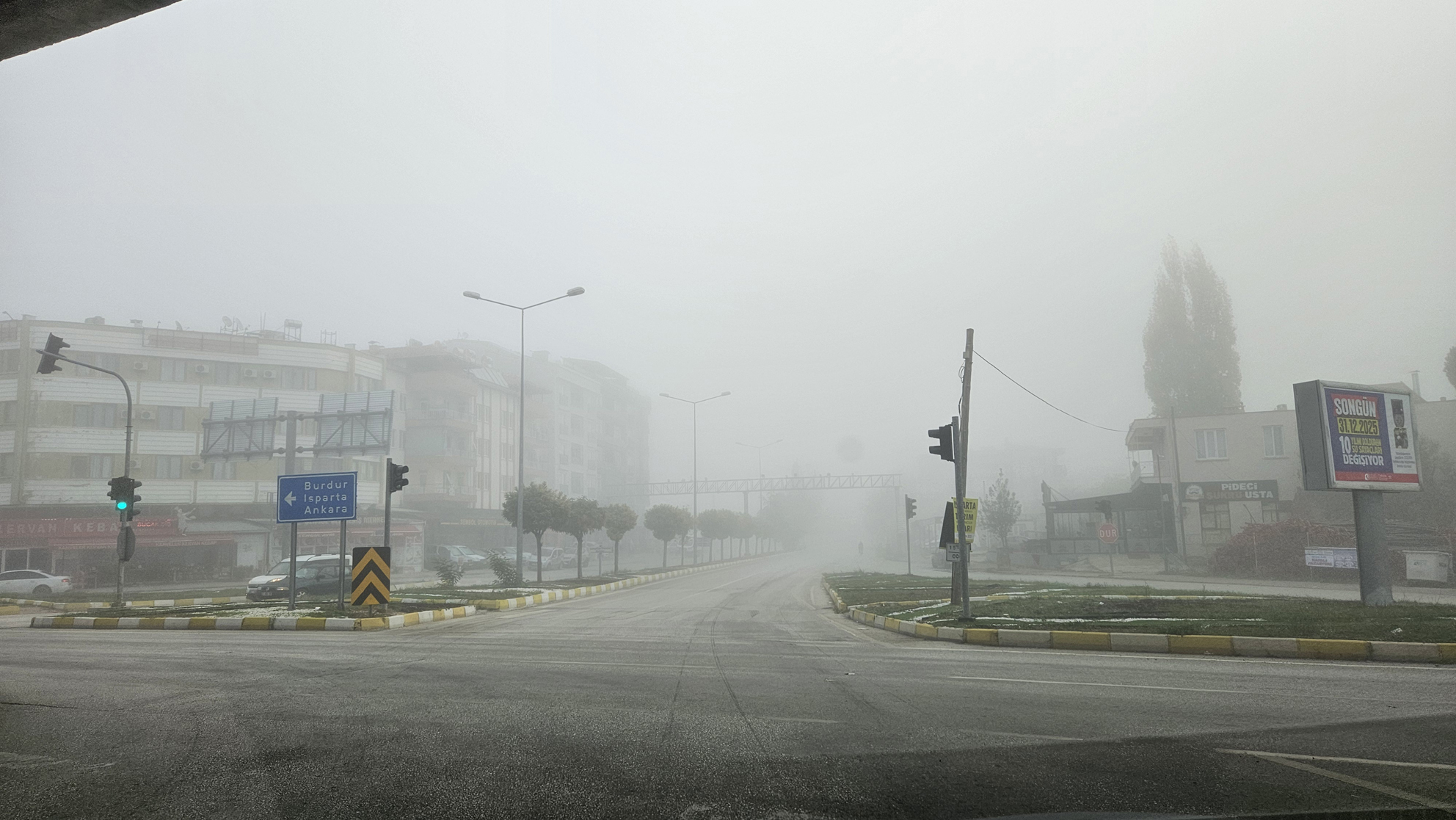 BURDUR'un Bucak ilçesinde sabah saatlerinde etkili olan sis görüş mesafesini 50 metreye kadar düşürdü.