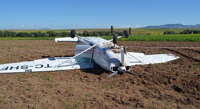 Zorunlu iniş yapan eğitim uçağı devrildi
