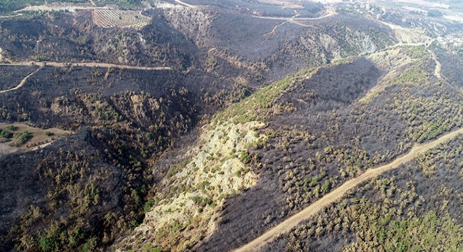 Hatay'da yanan ormanlık alan, havadan görüntülendi