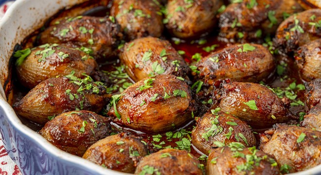 Geleneksel Türk mutfağının en özel lezzetlerinden biri olan soğan dolması, bol ekşili ve hafif acılı aromasıyla damaklarda unutulmaz bir iz bırakıyor. Çoğu zaman etli dolmaların gölgesinde kalsa da, soğan dolması kendine has dokusu ve zengin lezzetiyle sofralarda baş köşeye oturmayı hak ediyor.