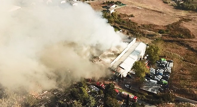 Avcılar'da bulunan geri dönüşüm tesisinde çıkan yangın itfaiye ekiplerinin ...