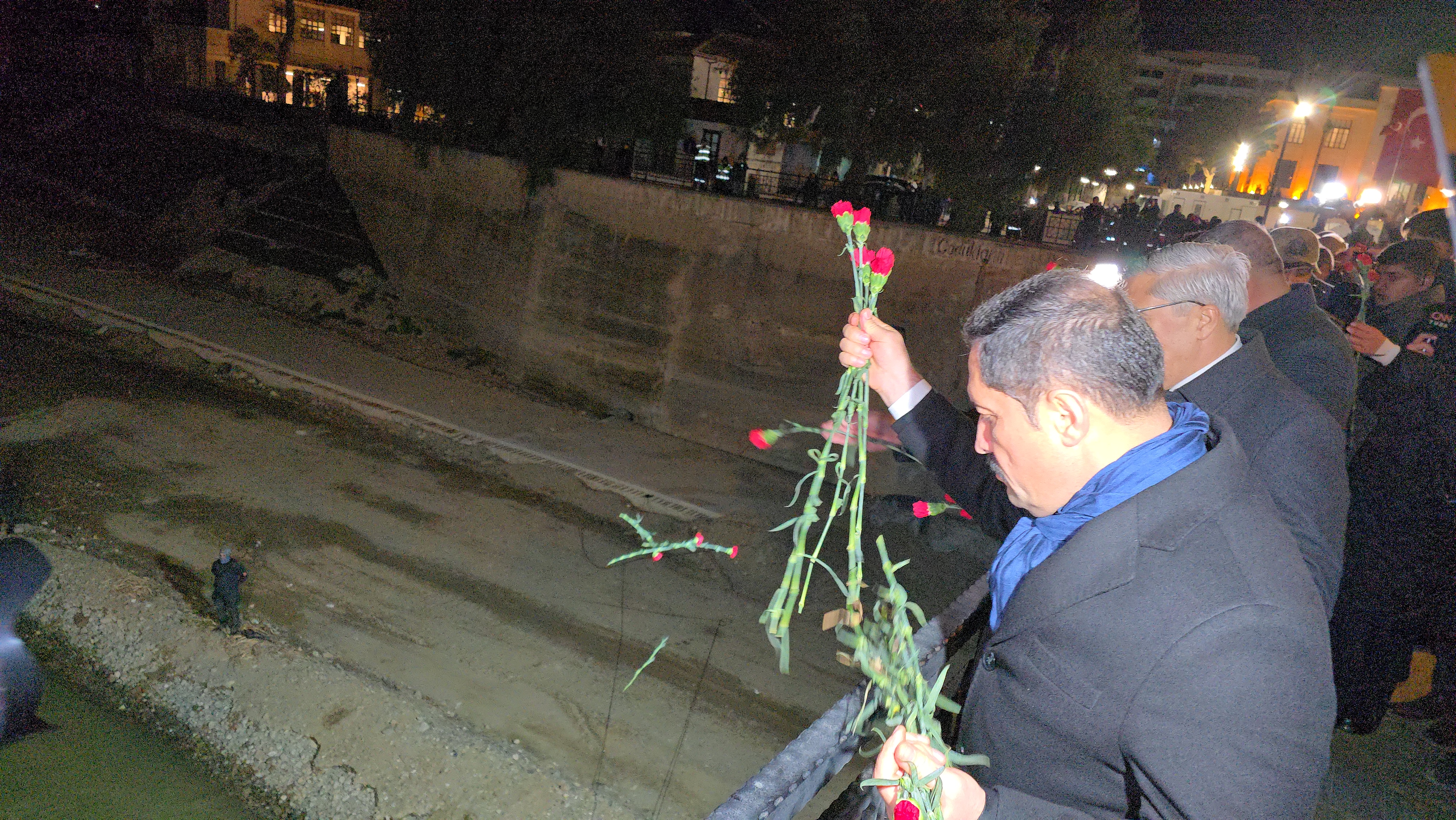 Burada yapılan duaların ardından kalabalık, Asi Nehri’ne depremde hayatını kaybedenler için karanfil bıraktı.