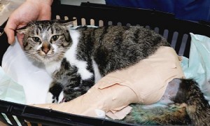 Depremde üzerine dolap devrilen kedi, ameliyat edildi