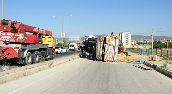 AFYONKARAHİSAR'ın Dinar ilçesinde kamyonun devrildiği kazada kasada yüklü ...