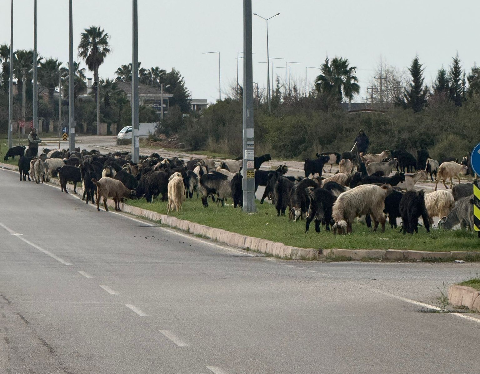 Bugün bir okurun çekip Gün Haber’e gönderdiği bu fotoğraflarda, refüjde küçükbaş hayvan otlatan çobanların görüntüleri yer alıyor. Okurumuzun, ‘Döşeemaltı Belediyesi’nin çim kesme makineleri’ notuyla gönderdiği bu fotoğraflar, ilçedeki durumu özetliyor.