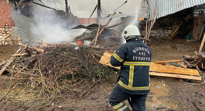 BURDUR'da çıkan yangında ev ve ahır yanarak kullanılamaz hale geldi.