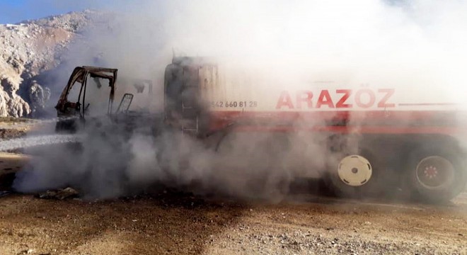 AFYONKARAHİSAR'ın Akin Köyünde gölet çalışmasında kullanılan arazöz, yanarak ...