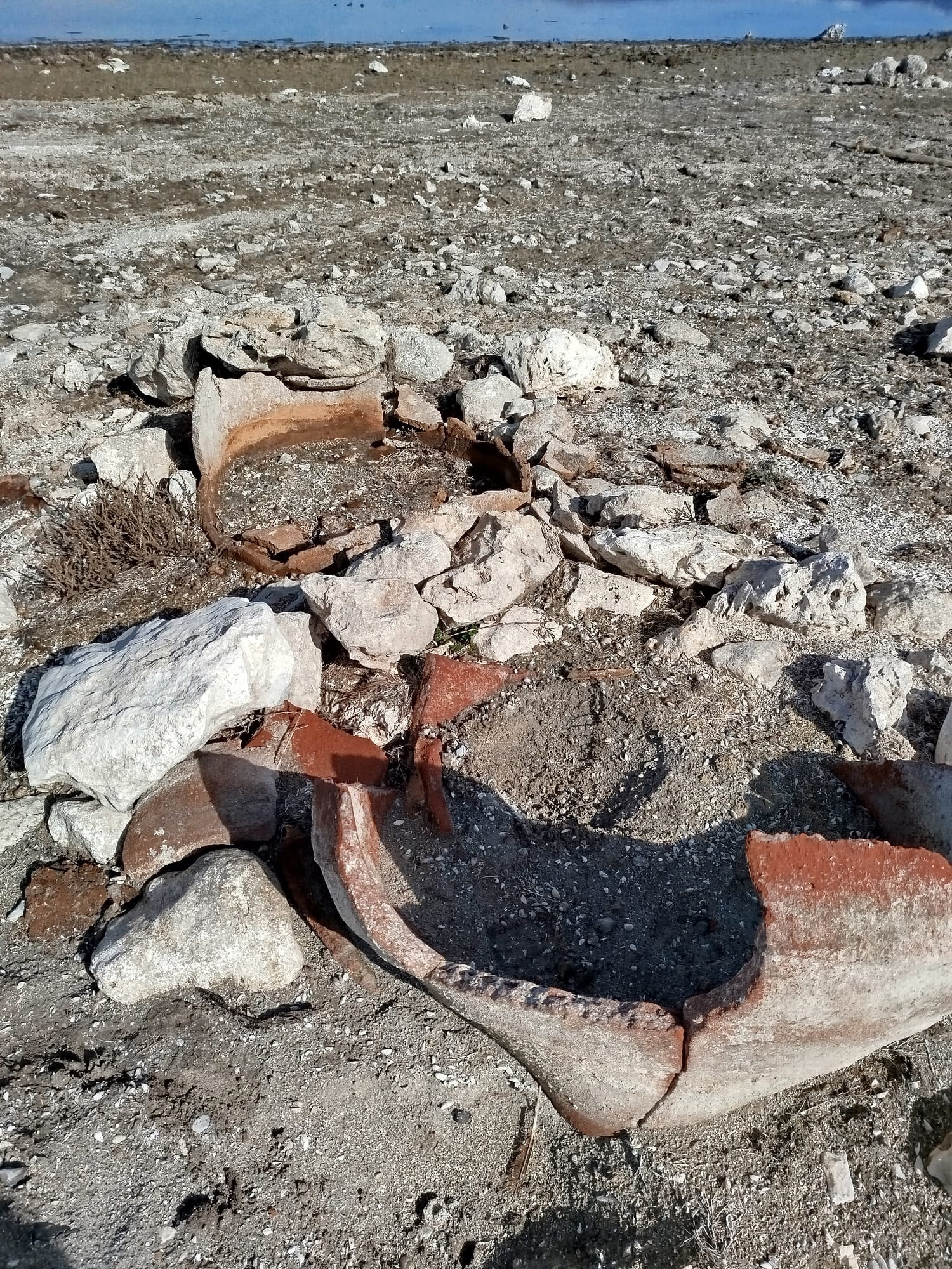 DHA muhabirine konuşan Ali Dalfidan, sularının çekilmesiyle sahil boyunca birden fazla büyük küple karşılaştıklarını belirterek, bazı küplerin içerisinde insan kemiklerine benzeyen kalıntılar bulunduğunu söyledi. Durumu İlçe Jandarma Komutanlığı'na bildirdiklerini aktaran Dalfidan, küplerin içerisinde değerli eşya olabileceği düşüncesiyle kimliği belirsiz kişi ya da kişilerce kırdığını ve bu durumun tarihi dokuya zarar verdiğini söyledi. Muhtar Ali Dalfidan, buluntuların 'küp mezar' olarak kullanıldığını düşündüklerini, alanın mutlaka uzman ekipler tarafından incelenmesi gerektiğini vurguladı. Dalfidan, bölgede arkeolojik çalışma yapılmasını da istedi. Göl kıyısında ortaya çıkan buluntularla ilgili detaylı inceleme başlatılması bekleniyor.