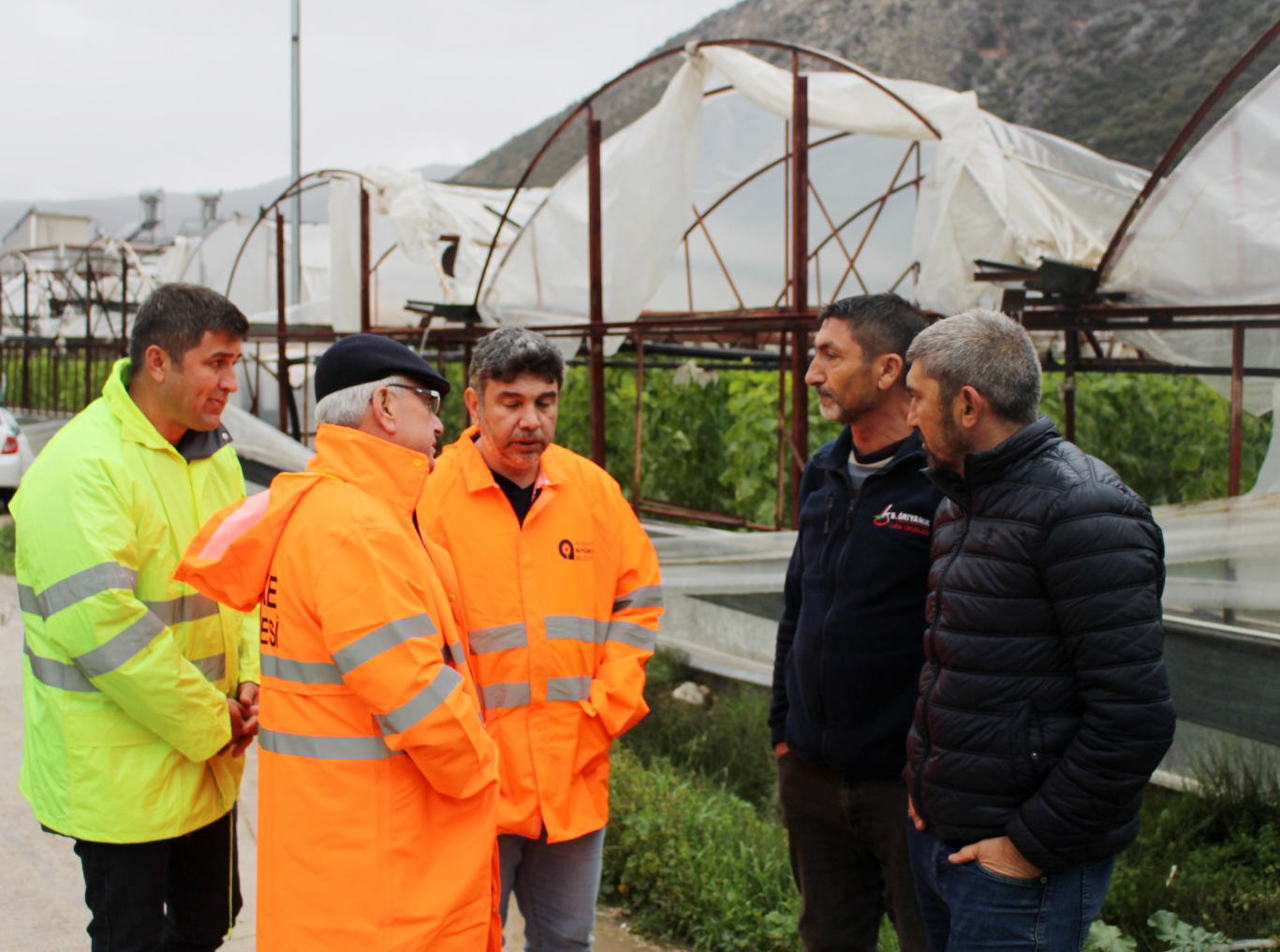 Finike’de yağış ve hortumun neden olduğu hasarı tespit etmek için hızla harekete geçen Antalya Büyükşehir Belediyesi Tarımsal Hizmetler Dairesi Başkanlığı ekipleri, hasar tespit çalışması yaptı. Finike Belediyesi Başkanı Mustafa Geyikçi ve Antalya Büyükşehir Belediyesi Tarımsal Hizmetler Dairesi Başkanı Sertaç Gökhan seraları zarar gören kent sakinlerini ziyaret ederek geçmiş olsun dileğinde bulundu.