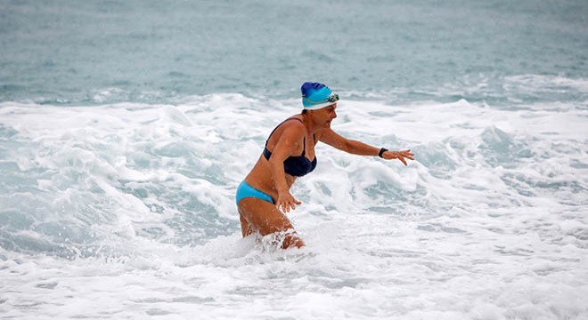 'Turuncu kod' uyarısına rağmen doğum gününü denizde kutladı
