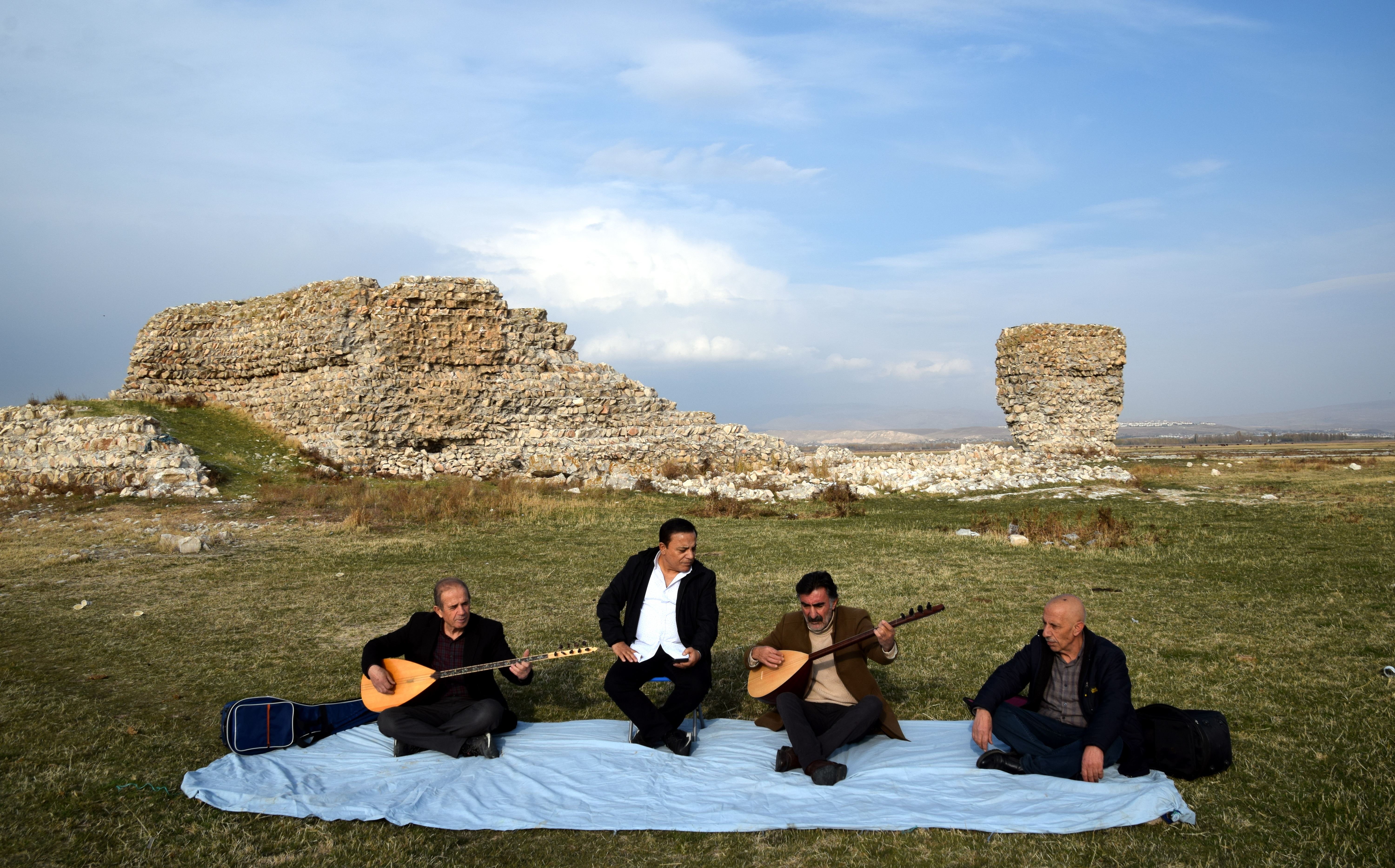 Ercişli halk müziği sanatçıları kuraklığa dikkat çekmek amacıyla 11 yıl önce tamamı karaya çıkan Erciş Kalesi'ne ait kalıntıların bulunduğu bölgede bağlama çalıp türkü söyledi. Halk müziği sanatçısı Celal Yarıcı, 40 yıl önce aynı bölgede balık avlayıp, gölde yüzdüklerini anlattı.