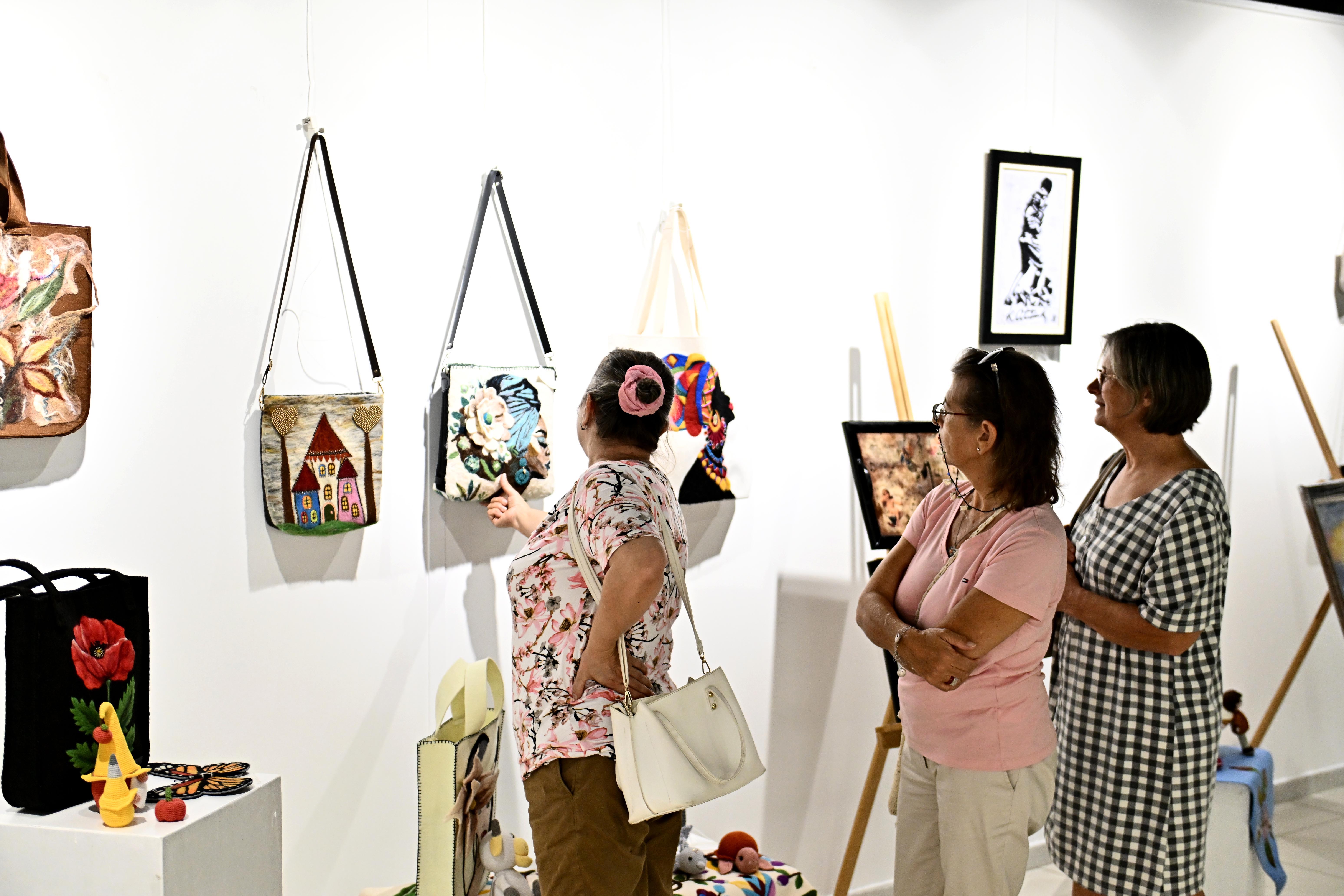 Sergi salonunda ayrıca her biri yaşlı evi üyelerinin elinden çıkan yağlıboya resimler, keçe işlemeli tablolar, su kabağından dekoratif eşyalar, amigurumi oyuncaklar, çantalar, rüzgar çanları, çocuk ve yetişkin kıyafetleri ve aksesuarlar ziyaretçiler tarafından hayranlıkla incelendi.