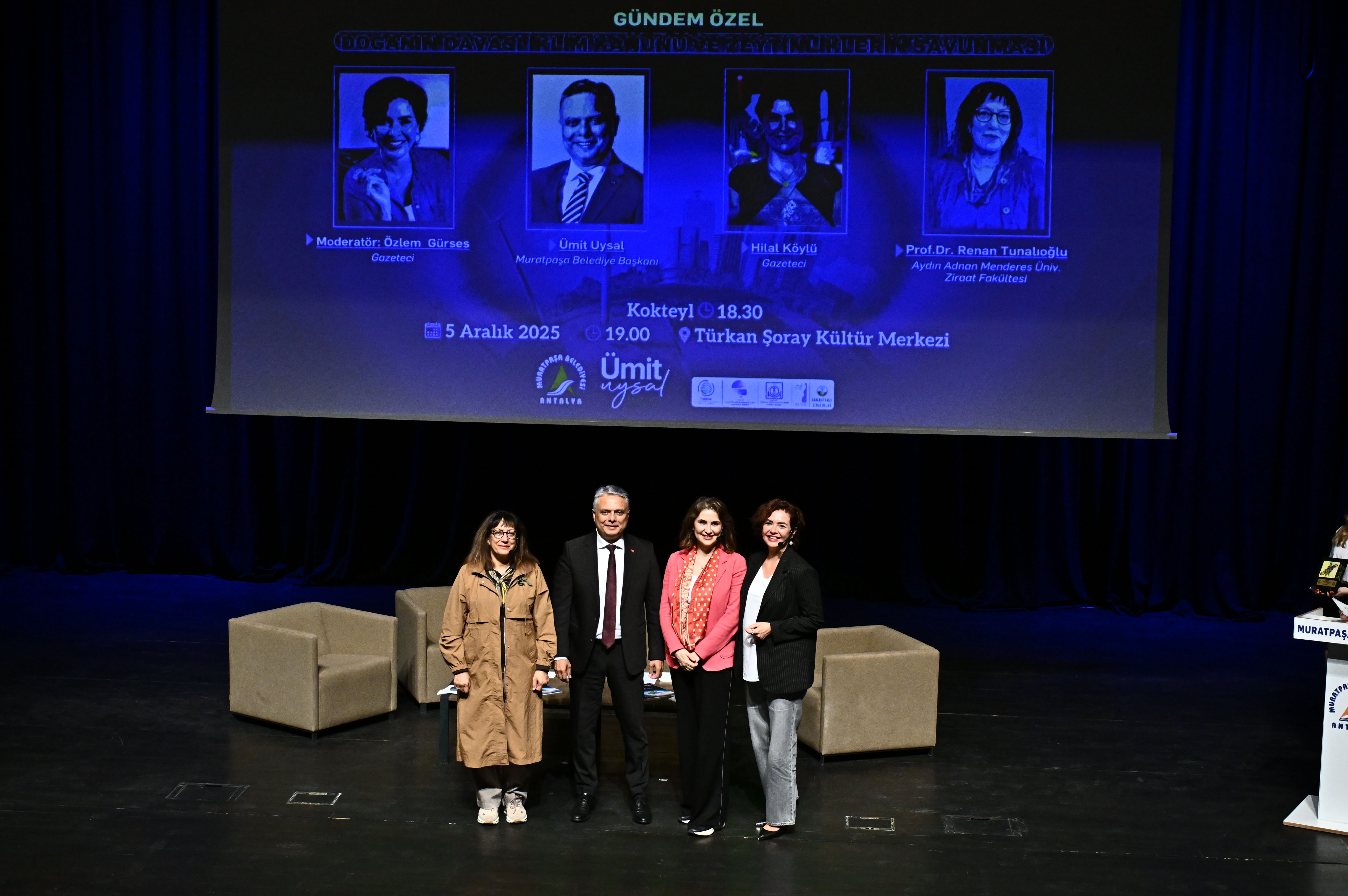 Gündem Özel’de Muratpaşa Belediye Başkanı Ümit Uysal, gazeteci Hilal Köylü ve Adnan Menderes Üniversitesi Ziraat Fakültesi’nden Prof. Dr. Renan Tunalıoğlu konuşmacı olarak yer aldı.