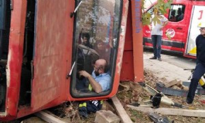 Kamyonun sürücüsü, faciayı önlemek için canını hiçe saydı