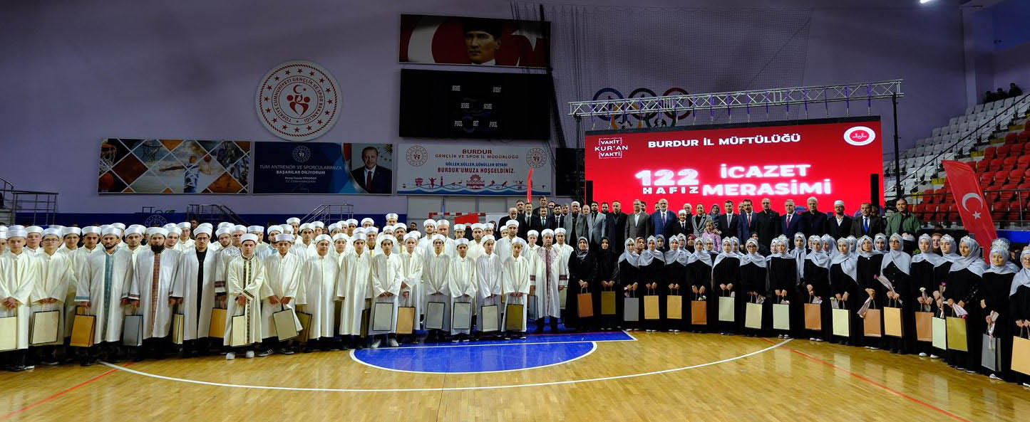 Diyanet İşleri Başkan Yardımcısı Hafiz Osman Şahin, "Bugün Burdur'umuzda 122 hafızımızın icazet merasimini idrak ediyoruz. Bu gençlerimiz Kur'an-ı Kerim'i ezberlediler. Kur'an'ın hafızı ve de muhafızı oldular. Rabbimizin bize Kur'an'ı ezberletmesindeki maksat Kur'an'ın şerefiyle şereflenmek içindir" diye konuştu. İl Müftüsü Ali Hayri Çelik de hafızları tebrik etti.