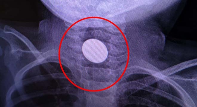 Bursa'nın İnegöl ilçesi Süleymaniye Mahallesi'nde yaşayan Mevlüt ve Hilal K. çiftinin oğulları Hamza, salonda bulduğu madeni 1 lirayı ağzına attı. Ancak para, çocuğun boğazına takıldı. Hamza hemen İnegöl Devlet Hastanesi'ne götürüldü. Burada yapılan ilk müdahalenin ardından da Dörtçelik Çocuk Hastanesi'ne sevk edildi.