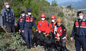 Kayalıkta mahsur kalan 3 keçiyi jandarma kurtardı