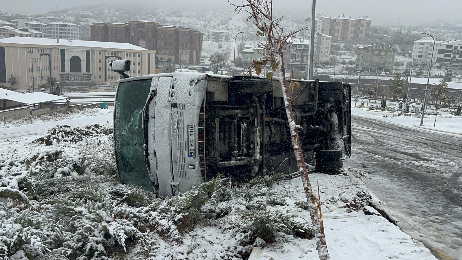 Kaza, saat 07.30 sıralarında Raşitbey Mahallesi TOKİ bağlantı yolunda meydana geldi. Bir fabrikada çalışan işçileri taşıyan Abdullah A. yönetimindeki 50 EC 110 plakalı servis midibüsü kar yağışı nedeniyle kayganlaşan yolda sürücüsünün kontrolü yitirmesi sonucu devrildi. Kazada 14 kişi yaralandı. Çevredekilerin ihbarı üzerine kaza yerine polis, itfaiye ve sağlık ekipleri sevk edildi. Sağlık ekiplerinin ilk müdahalesinin ardından yaralılar, kentteki hastanelere kaldırıldı.