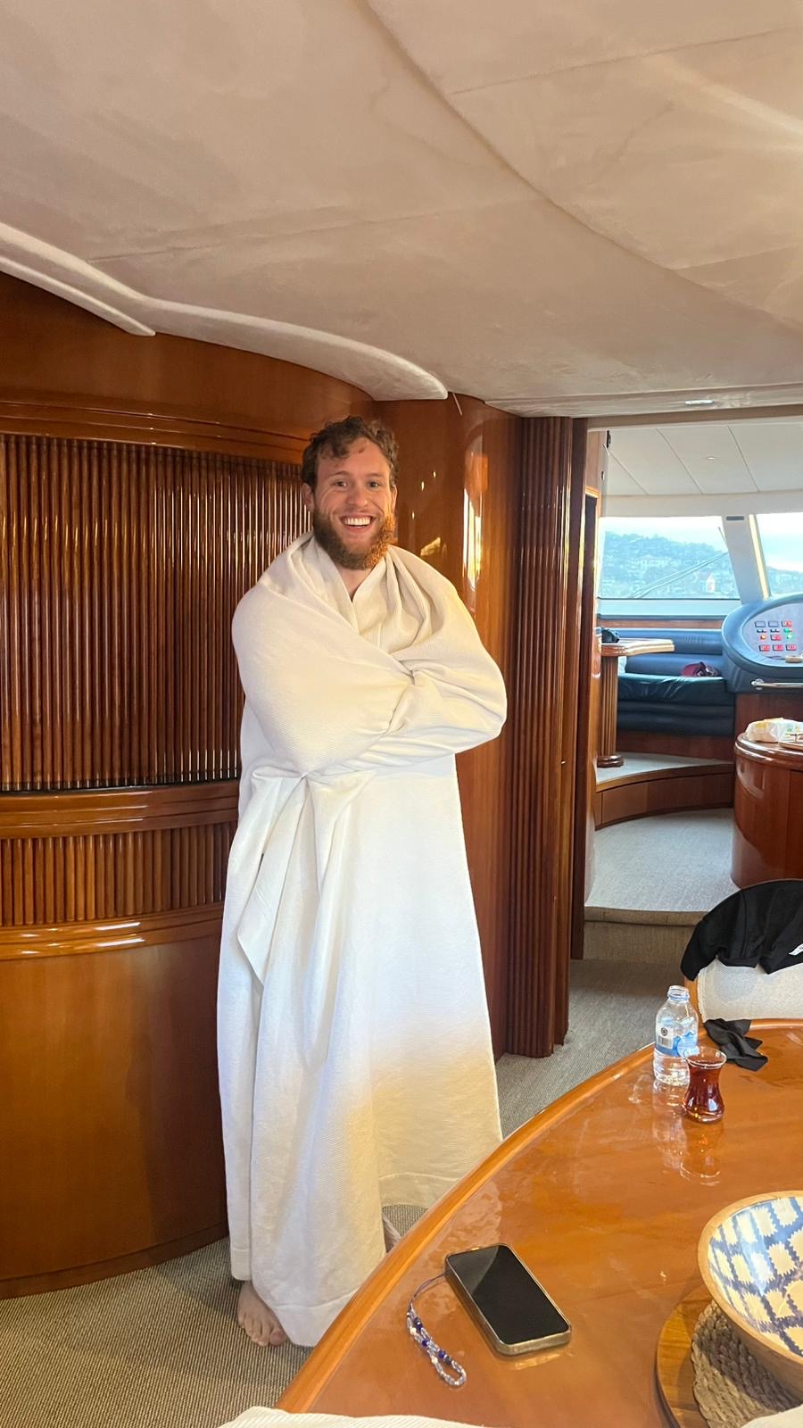 Turistin denize atladığı yatın kaptanı Orhan Kanburoğlu, "Biz boğazda seyir halindeydik. Baş tarafımızda Beylerbeyi zaten şurası karşımız Beylerbeyi. Beylerbeyi tarafında bir vapur, yani duraklama gibi hareketler gerçekleşti aykırı hareketler. O sırada zaten insanlar da toplanmıştı. Vapurun ön tarafında e bizim personel var Erhan Gemici. Onunla birlikte baktık denizin üstünde kadın var hareketsiz bir şekilde duruyordu. Ne yapalım ne edelim nasıl müdahale ederiz nasıl alırız diye tartışırken baş tarafta da bir turist vardı. Yabancı uyruklu bir kişi yani nerede olduğunu bilmiyorum açıkçası. Biz o sırada kadının yerini tespit ederken o bir anda atladı" dedi.
