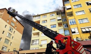 Çatısı alev alev binada mahsur kalan kişi kurtarıldı
