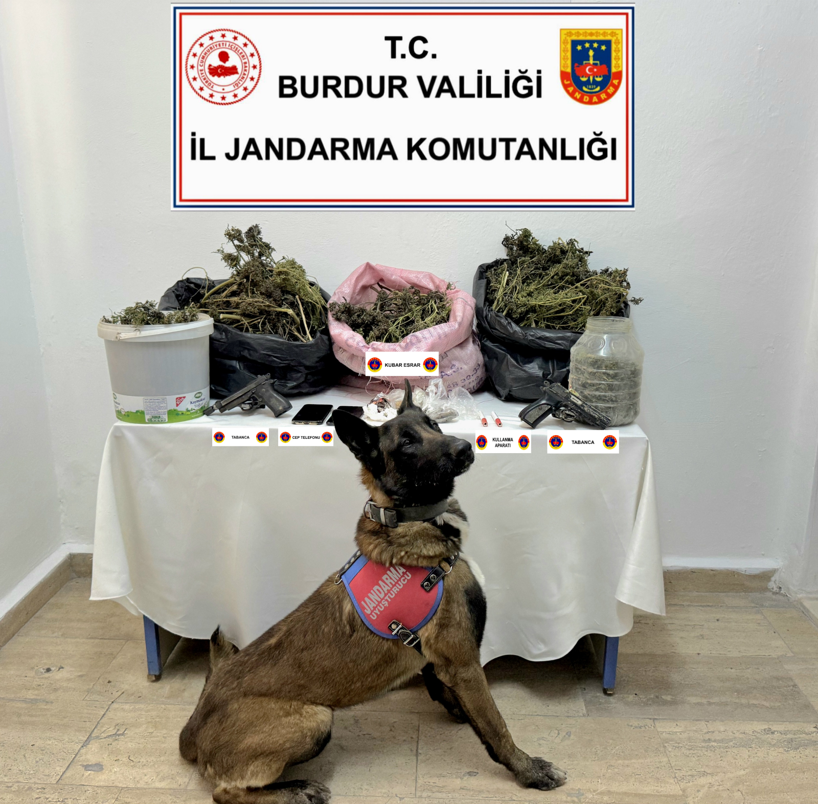 Burdur Cumhuriyet Başsavcılığı koordinesinde, Burdur İl Jandarma Komutanlığı ekipleri tarafından geçen perşembe günü uyuşturucu ticareti yapan kişilere yönelik operasyon düzenlendi. Operasyonda İ.K. ile Ö.K. yakalandı. Şüphelilerin üzerinde ve evlerindeki aramada 2 kilo 824 gram kubar esrar, 2 ruhsatsız tabanca, 10 gram kenevir tohumu, 3 uyuşturucu aparatı, 2 şarjör, 2 cep telefonu ele geçirildi. Jandarmadaki işlemlerinin ardından adliyeye sevk edilen şüpheliler çıkarıldıkları hakimlikçe tutuklandı.