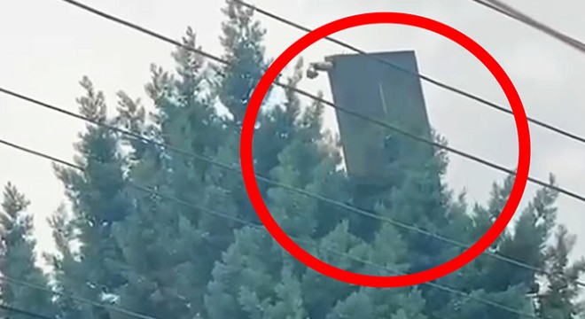 Çatıdan uçan güneş paneli ağacın üzerine düştü