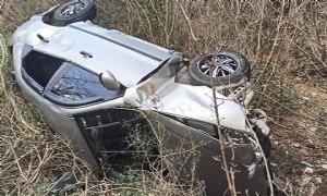 Ehliyetsiz sürücü otomobiliyle ormanlık alana uçtu