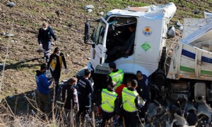 Kamyonun şoförü, kazadan hafif yaralı kurtuldu