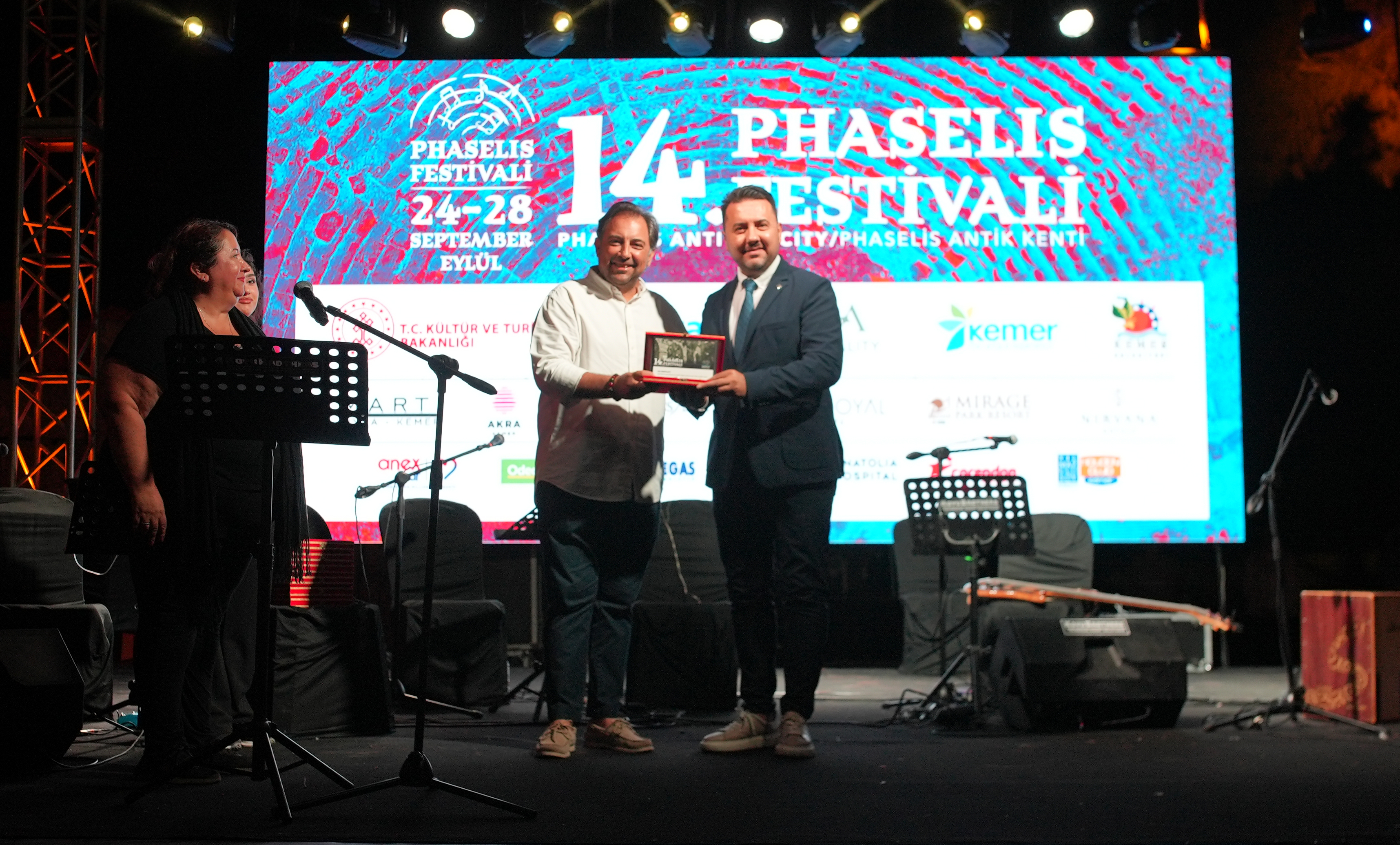 Bu yılın son konserinin ardından 14'üncü Phaselis Festivali'ne destek verenlere KETAV Başkanı Volkan Yorulmaz tarafından teşekkür plaketi verildi.