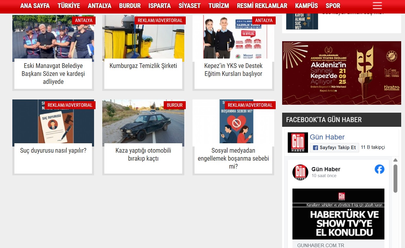 Kepez Belediyesi, 'Uluslararası Akdeniz Tiyatro Ödülleri-Akdeniz'in Sahnesi Kepez'de açılıyor' bannerinin Günhaber'de yayınlanan hali