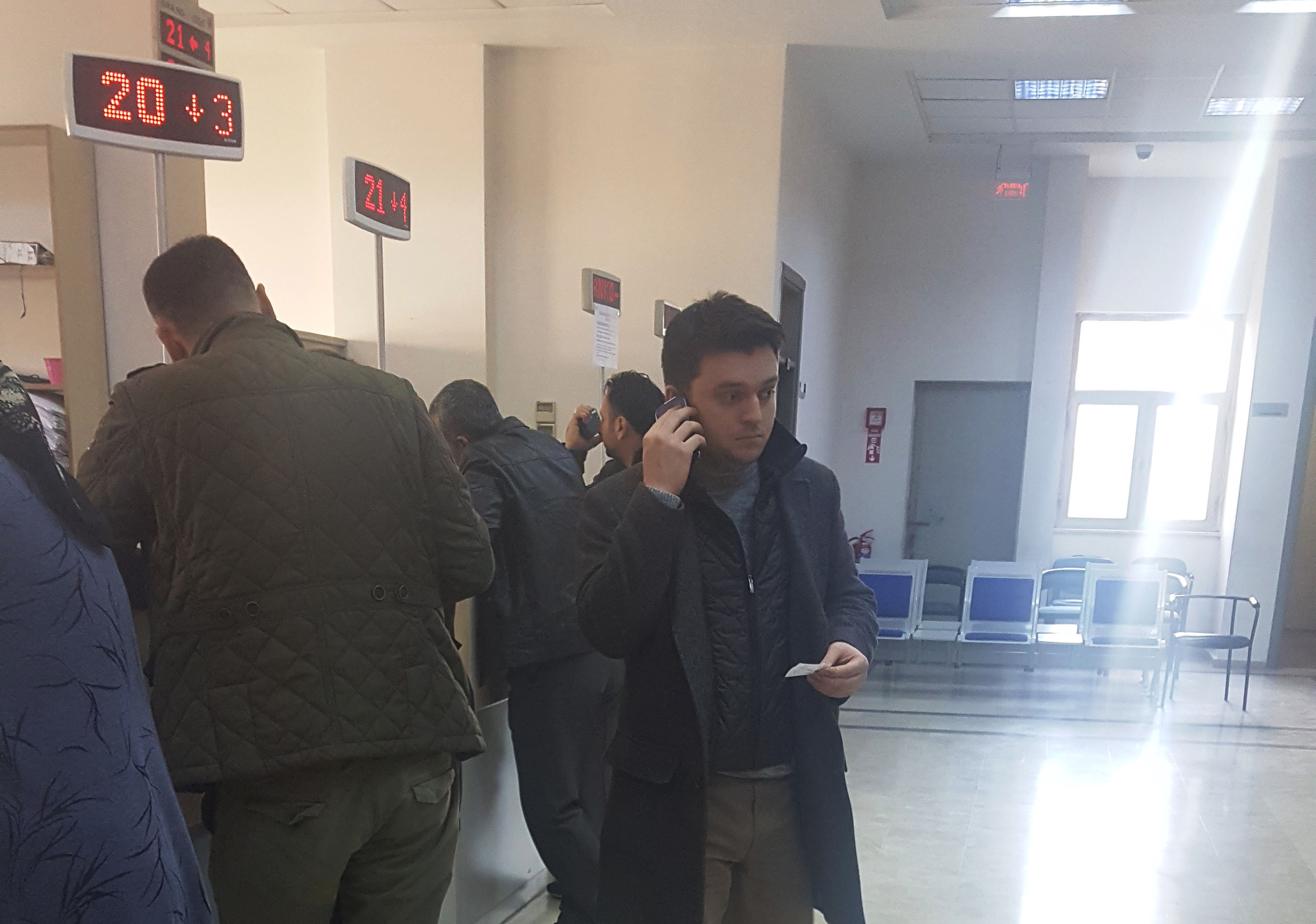 Belediyeye iş için gelen vatandaşların büyük bölümü de bu katı ziyaret ediyor ve bu bölümde işlerini yürütüyor. ‘Yangın çıkışı’ yazan bölümde, bir adet yangın söndürme tüpü var. Kapı demir sürgülü… Ve, birde asma kilit var. Kilitlenmiş bir yangın çıkışı…
