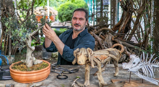 Doğadan topladığı tahta parçalarıyla heykeller yapıyor