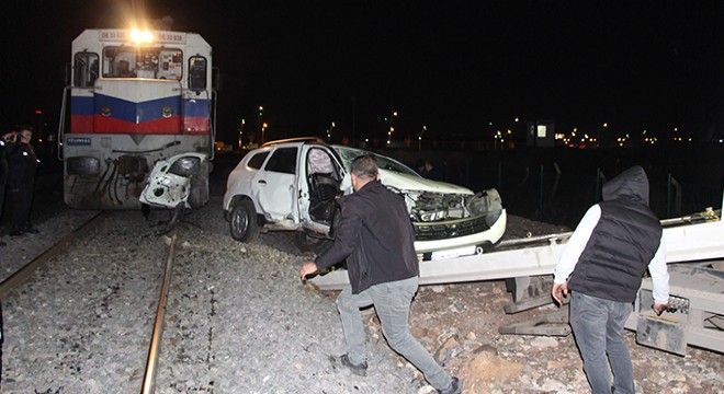Yük treni hemzemin geçitte otomobile çarptı: 4 yaralı