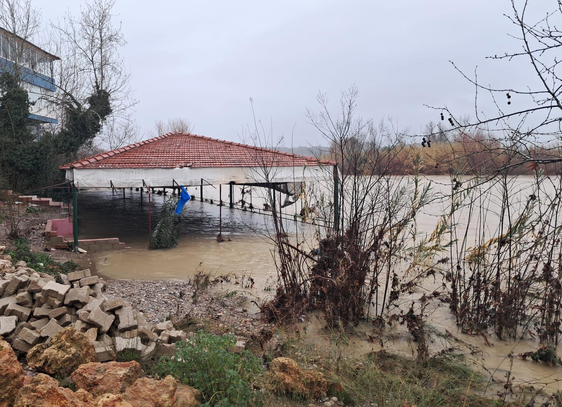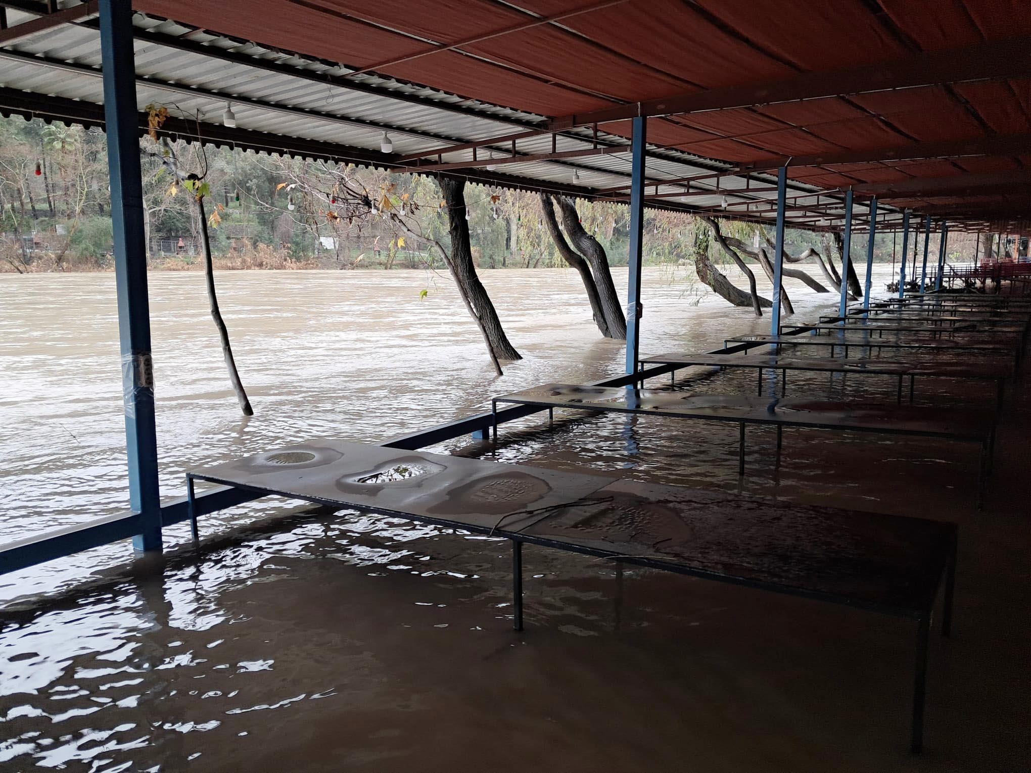 Bazı bölgelerdeki meydana gelen taşkınlar nedeniyle meyve bahçeleri ile ırmak kıyısındaki restoranların bahçeleri su altında kaldı.
