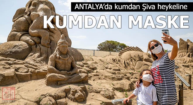 Antalya'da her yıl binlerce yerli yabancı turistin ziyaret ettiği Uluslararası Antalya Kum Heykel Festivali, kapılarını ziyaretçiye açtı. 40 ana temada 200'e yakın kumdan heykelin bulunduğu sergi alanında, koronavirüse dikkati çekmek için ilginç bir çalışmaya imza atıldı. Hint mitolojisinde Ganeşa ve Şiva olarak bilinen baba- oğul figürü üzerinde gerçekleştirilen restorasyon ile Şiva'nın ağız ve burnu kumla kapatılarak, maskeli görünümü kazandırıldı.