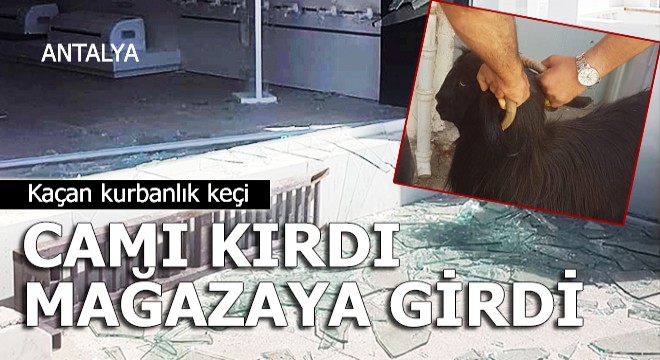 Kaçan kurbanlık keçi camı kırıp, mağazaya girdi
