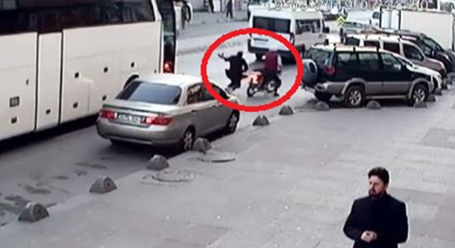 Kaza, iki gün önce sabah saatlerinde meydana geldi. Caddede trafiğin yoğun olduğu sırada duran otobüsün önünden karşıya yürüyen Gülnaz Y.'ye, otobüs ile otomobil arasından hızla geçen motosiklet çarptı. Gülnaz Y., çarpmanın etkisi ile yere düşüp, yaralandı. Kendisi de yere düşen sürücü, devrilen motosikletini kaldırıp, hızla olay yerinden kaçtı. Yaralı Gülnaz Y.'nin yardımına çevredeki vatandaşlar koştu. Başından ve vücudunun çeşitli yerlerinden yaralanan Gülnaz Y., hastaneye kaldırıldı. Gülnaz Y., tedavisinin ardından eşi Yüksel Y. ile birlikte gittiği polis merkezinde, kazanın ardından kaçan motosiklet sürücüsünden şikayetçi oldu.