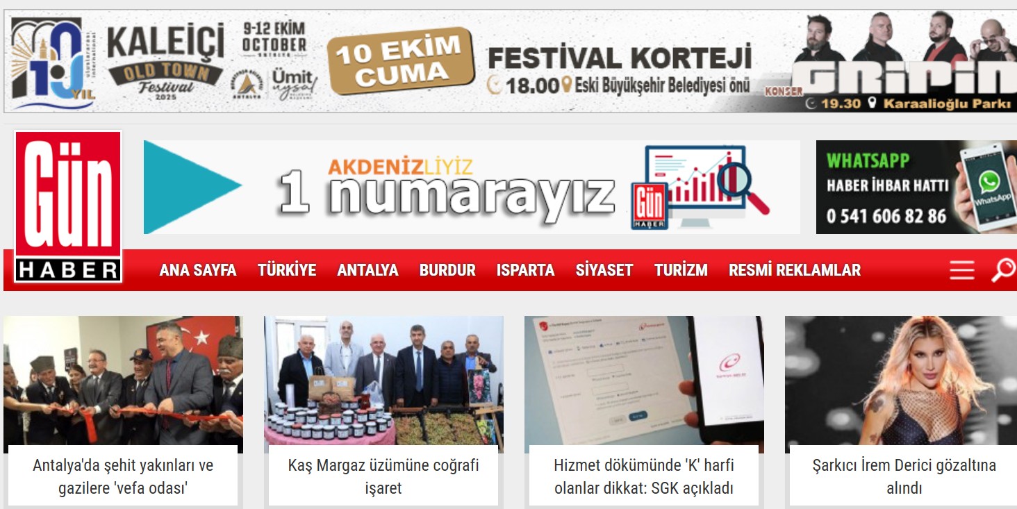 Ana Sayfa Türkiye Antalya BURDUR ISPARTA Siyaset Turizm Resmi REKLAMLAR KAMPÜS Spor GÜN'ün ürünü