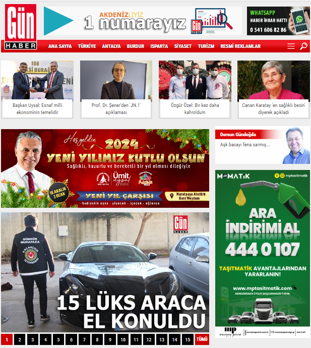 Muratpaşa Belediyesi Yeni Yıl ve Yeni Yıl Çarşısı reklamı Gün Haber'de yayınlanmış hali