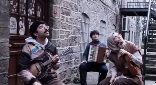 Boğaziçi Üniversitesi’nde kulüpleri kapatılan öğrenciler, Müzik Kulübü önünde enstrümanlarıyla çalışma yaptı.