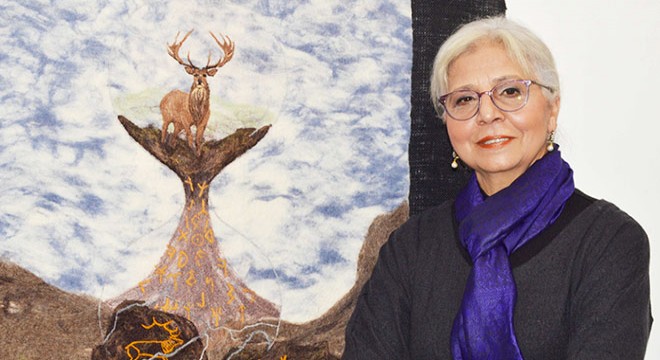 Keçe sanatçısı Nur Sağlamer de keçe atölyesinde yaptığı çalışmaları ve keçenin tarihçesini anlattı. Ön Türk Uygarlığı'na ait kaya resimlerini keçe tuval üzerine yansıtan Sağlamer, sözlerini şöyle sürdürdü;